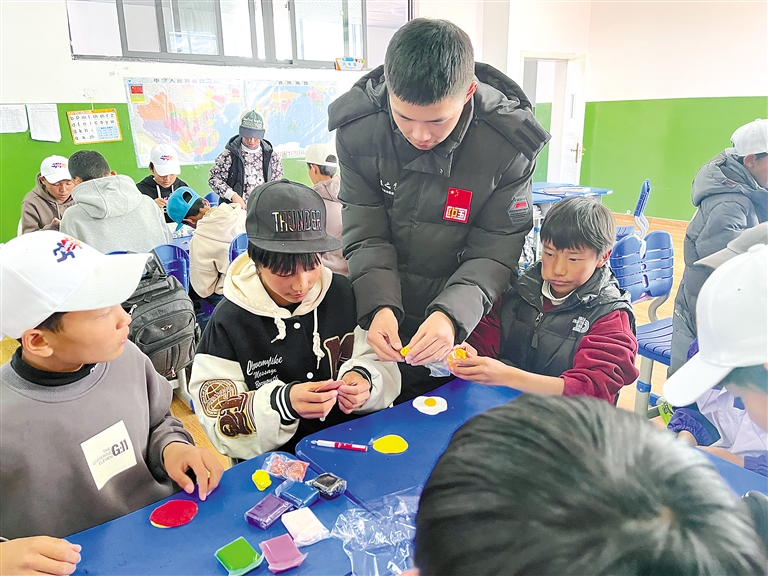 圖為支教隊員余梓鑫和孩子們一起完成課堂小游戲。