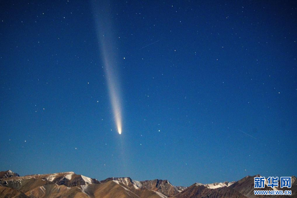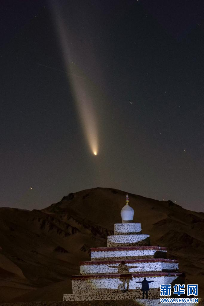 10月13日,拍攝于珠峰加烏拉山埡口的彗星。新華網發 李明發 攝