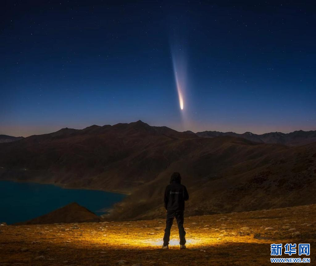10月13日,拍攝于羊卓雍措1號觀景臺的彗星。新華網發 范禹杰 攝
