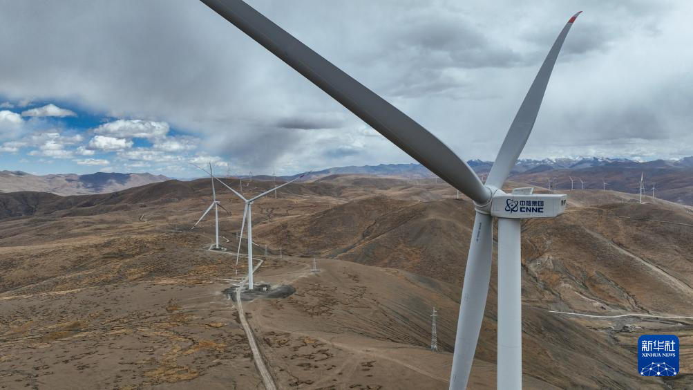 10月17日拍攝的位于西藏日喀則市薩迦縣的風力發電機組。新華社記者 晉美多吉 攝?