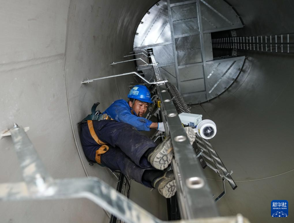 10月17日,工作人員在檢修風機內部的監控設備。新華社記者 晉美多吉 攝??