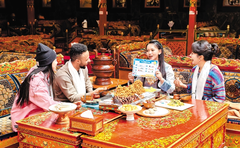 “在我們餐廳,經常能看到不同民族、不同地方的人們同吃一道菜、共飲一壺茶的場景,大家其樂融融,就像一家人一樣。”餐飲服務人員益西說。