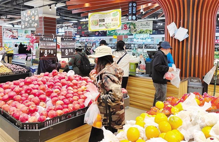 近日,拉薩市民在琳瑯滿目的超市食品區選購蔬果。記者 旦增蘭澤 攝