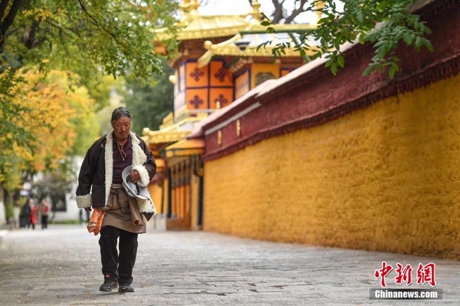 金秋十月,拉薩市西郊羅布林卡秋意正濃,景色宜人。眾多市民、游客紛紛前往打卡。羅布林卡藏語意為“寶貝園林”,始建于公元十八世紀40年代,是典型的藏式風格園林,也是西藏的世界文化遺產之一,有格桑林卡、措吉頗章、金色頗章等宮殿建筑群。這里秋景如畫,成為人們感受自然與歷史文化的好去處。圖為10月21日,民眾在羅布林卡內參觀游覽。貢嘎來松 攝