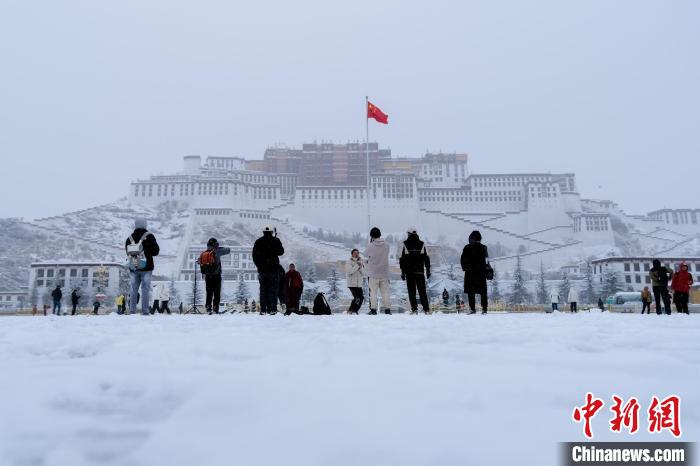 資料圖為2024年1月18日,拉薩迎來降雪天氣,游客在拉薩布達拉宮廣場合影留念。江飛波 攝