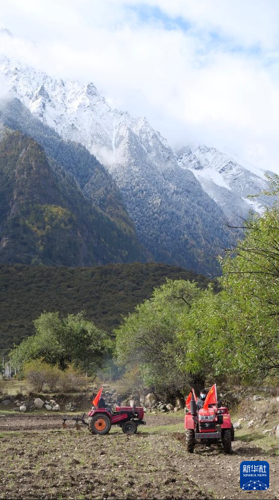 每年10月,是西藏那曲市嘉黎縣尼屋鄉播種冬小麥的時節。忠玉村村民索朗益西和鄉親們開著拖拉機翻土備耕。