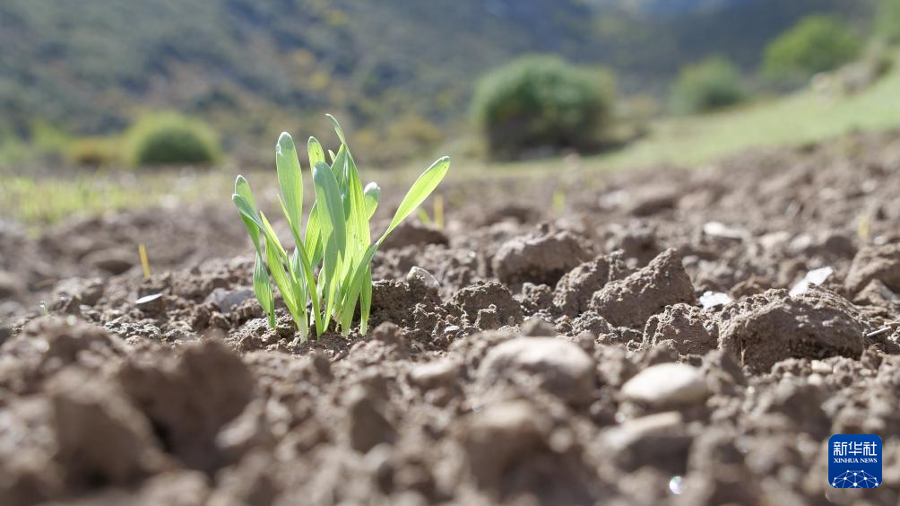 10月21日,西藏嘉黎縣尼屋鄉播種的冬小麥部分已經發芽。新華社記者魏冠宇 攝