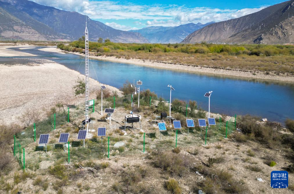 這是在林芝雅尼國家濕地公園尼洋河畔拍攝的生態(tài)監(jiān)測系統(10月24日攝,無人機照片)。新華社記者 劉天宇 攝