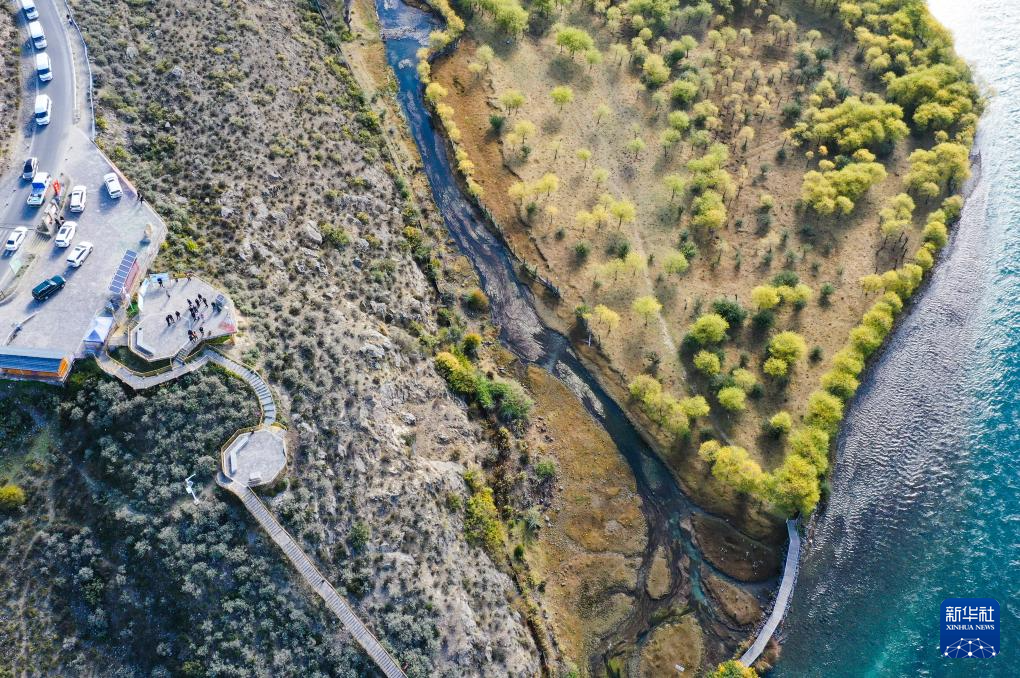 西藏林芝雅尼國家濕地公園內的觀景臺和步行棧道(10月24日攝,無人機照片)。新華社記者 李賀 攝