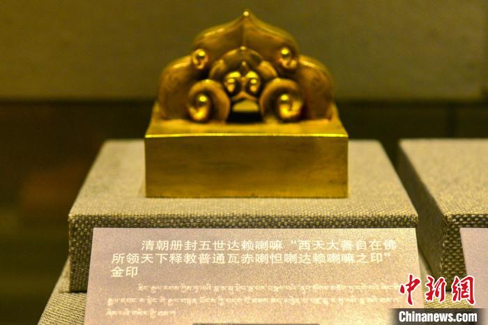 2019年3月28日,在西藏百萬(wàn)農(nóng)奴解放紀(jì)念館展出的清朝冊(cè)封五世達(dá)賴?yán)锝鹩 V行律缬浾?江飛波 攝