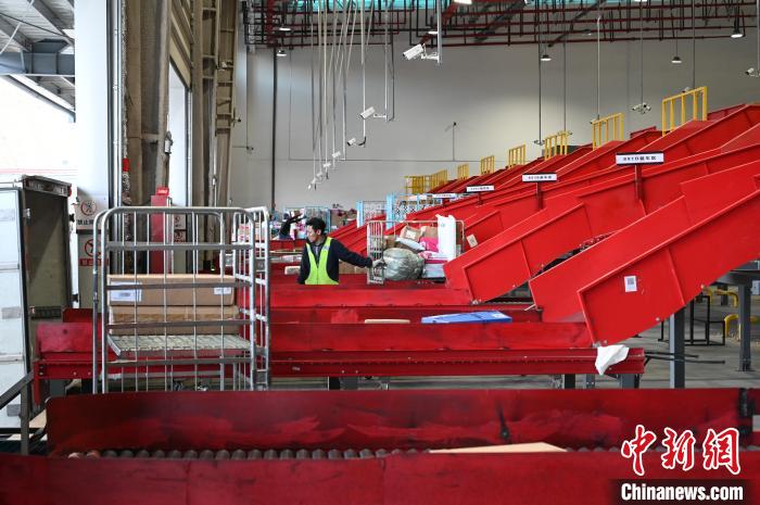 圖為拉薩一家快遞企業的分揀車間。趙朗 攝