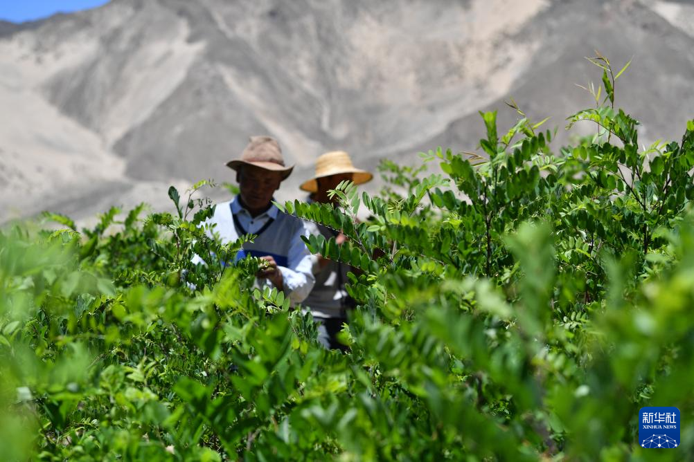 西藏山南市貢嘎縣吉雄鎮劉瓊村村民在查看樹苗生長情況(2021年6月2日攝)。新華社記者 晉美多吉 攝