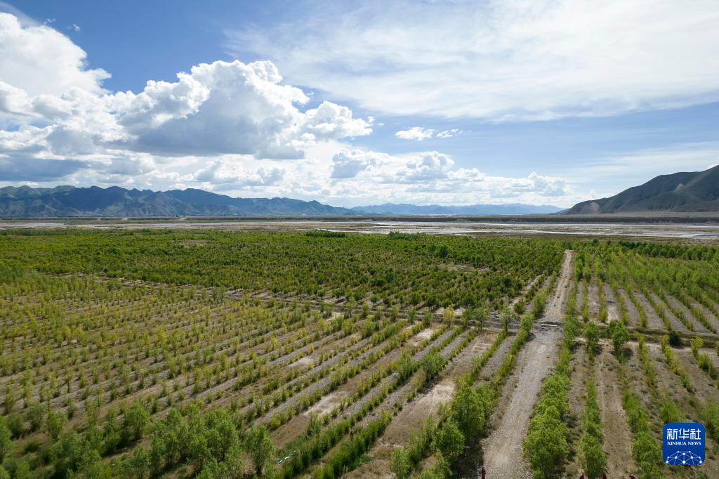 經過無數人長期不懈努力,大面積的流動沙丘變成了半流動或固定沙丘,沙化面積逐年減少,水源涵養能力明顯增強。如今,在雅魯藏布江流過的日喀則、山南、拉薩、林芝等地,江畔已是樹木成林、綠洲萬頃。雅江兩岸的“綠色長城”,守護著這里的碧水藍天。