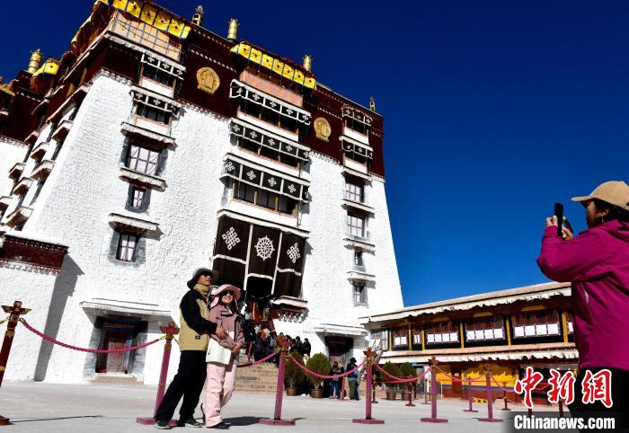 圖為11月1日,游客在布達拉宮德央夏廣場拍照。中新社記者 李林 攝