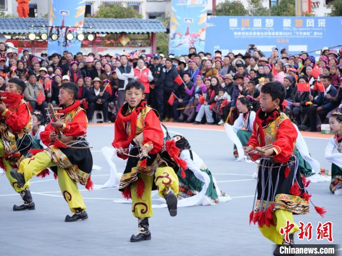 圖為西藏自治區首屆鄉村籃球聯賽2024“千年鹽田”“康BA”比賽前文藝演出。昌都市芒康縣委宣傳部供圖