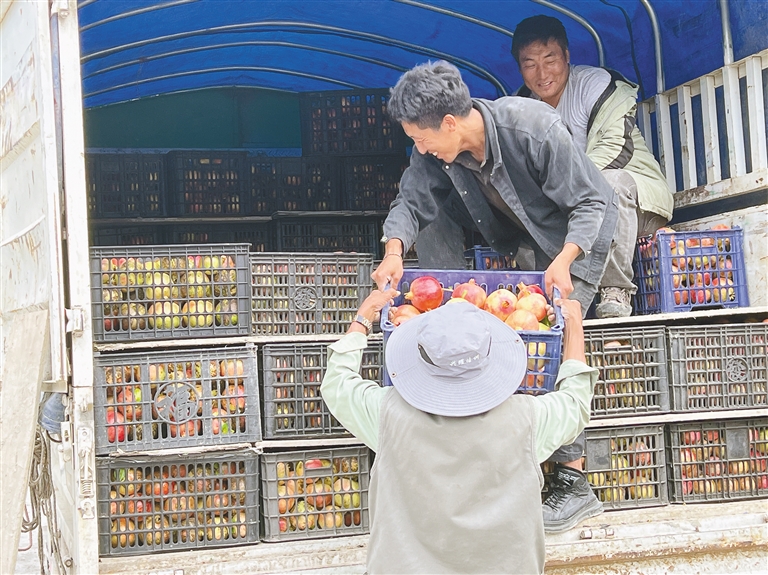 圖為昌西村果農將石榴裝車,準備外運銷售。 記者 劉楓 通訊員 吳子偉 攝