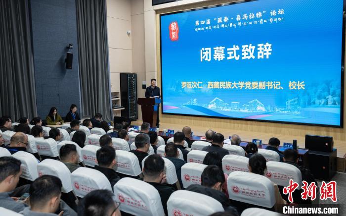 西藏民族大學黨委副書記、校長羅旺次仁在第四屆“藏秦·喜馬拉雅”論壇閉幕式上發表致辭。主辦方供圖
