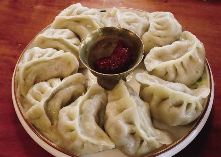 緊鄰八廓街的北京東路,有一家非常受拉薩群眾歡迎的餐廳——頓尼亞餐廳酒吧。它隱藏在熙熙攘攘的街邊,如果不仔細看,很容易錯過。店內主營藏餐、尼泊爾餐、中餐,可供選擇的菜品較多,多數是盲點都不會出錯的菜品。在這里,你可以品嘗到正宗的藏式牛肉包子,一口咬下,牛肉餡爆汁,格外美味。你也可以點一份辣味炒雞配烤馕餅,炒雞中的番茄和彩椒與大塊雞肉相得益彰,酸甜與鮮香的口感融合得恰到好處。此時再來一壺甜茶,這一餐包你吃得滿意。