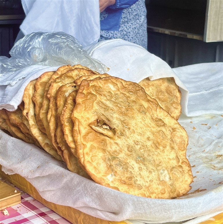如果你擔心一份蓋澆飯吃不飽,可以提前在位于同一條巷子的“爺爺奶奶肉餅”買上一個肉餅。這家店同樣是城關區的老店,深受拉薩群眾的喜愛。肉餅脆而不油,面粉和肉餡的香氣完美融合。建議上午12:00前去,這家店鋪通常賣完肉餅就早早關門啦!