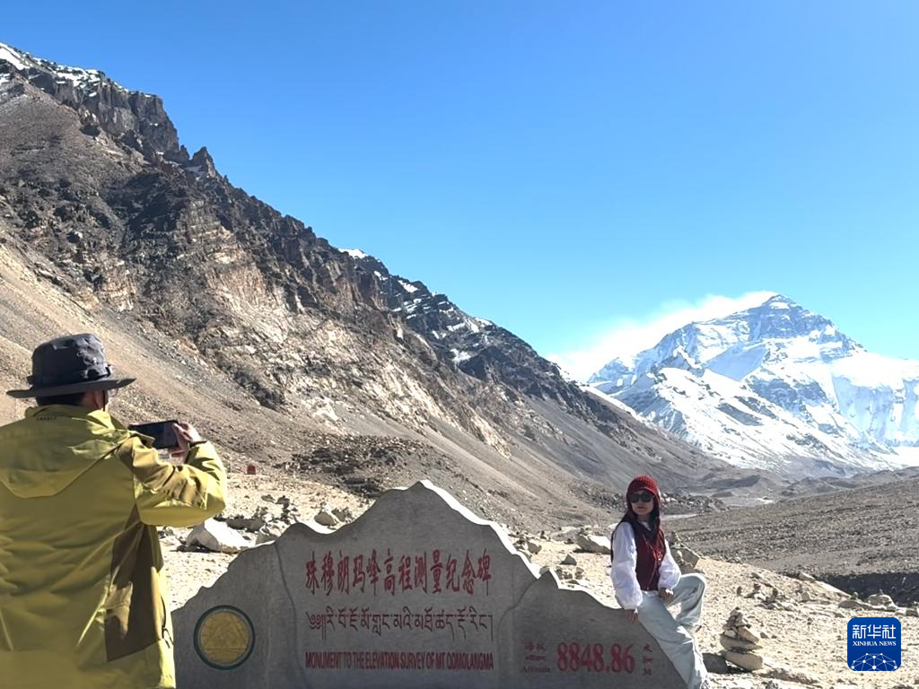 11月20日,游客在珠峰景區拍照留影。新華社記者 盧丹陽 攝