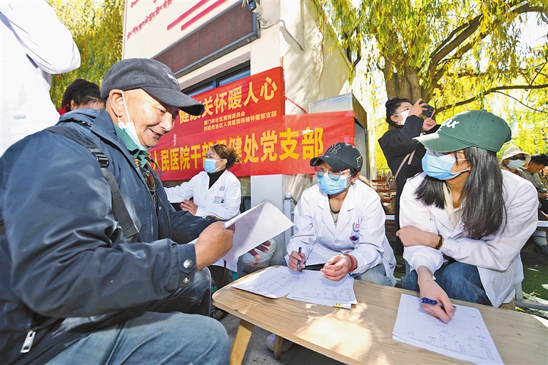 拉薩市策門(mén)林社區(qū)居民委員會(huì)聯(lián)合自治區(qū)人民醫(yī)院干部保健處黨支部在宗角祿康公園開(kāi)展義診活動(dòng)。記者 唐斌 攝