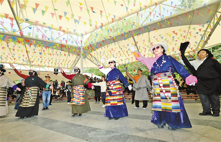 市民在宗角祿康公園跳鍋莊舞。記者 唐斌 攝
