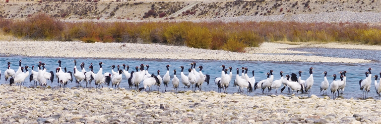 記者了解到,近年來隨著西藏高度重視黑頸鶴等野生動物的保護工作,通過建立黑頸鶴國家級自然保護區、實施生態修復工程,有效改善了黑頸鶴的生存環境。據統計,西藏境內的黑頸鶴數量由不到3000只增加到1萬多只,種群數量也在持續增長。(圖由洛克 益西曲珍提供)