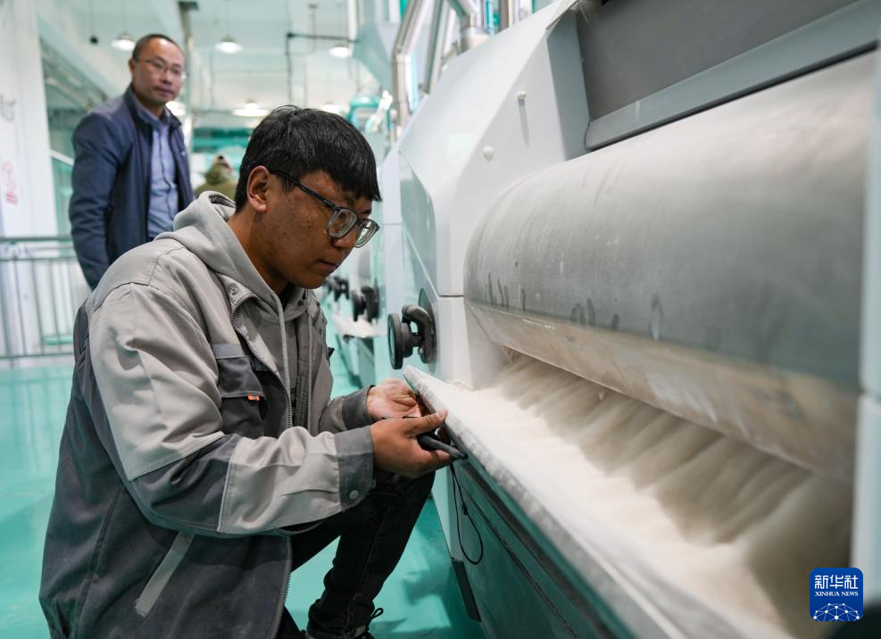 西藏稞研農業科技有限公司工作人員巡視青稞谷物專用生產線(10月16日攝)。新華社記者 晉美多吉 攝