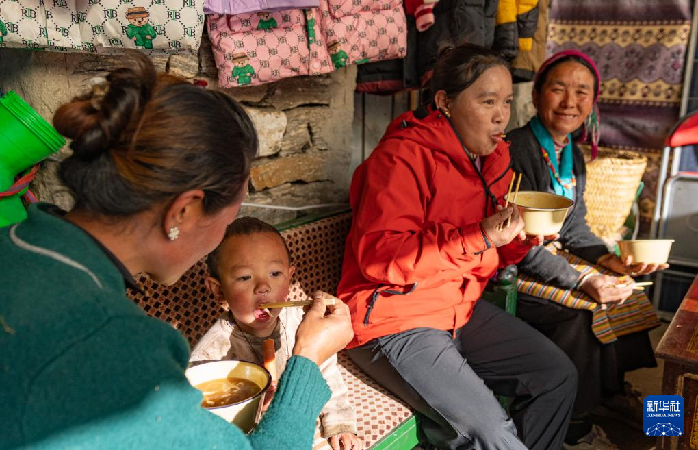 12月13日,陳塘鎮夏爾巴群眾在一起吃早飯。
