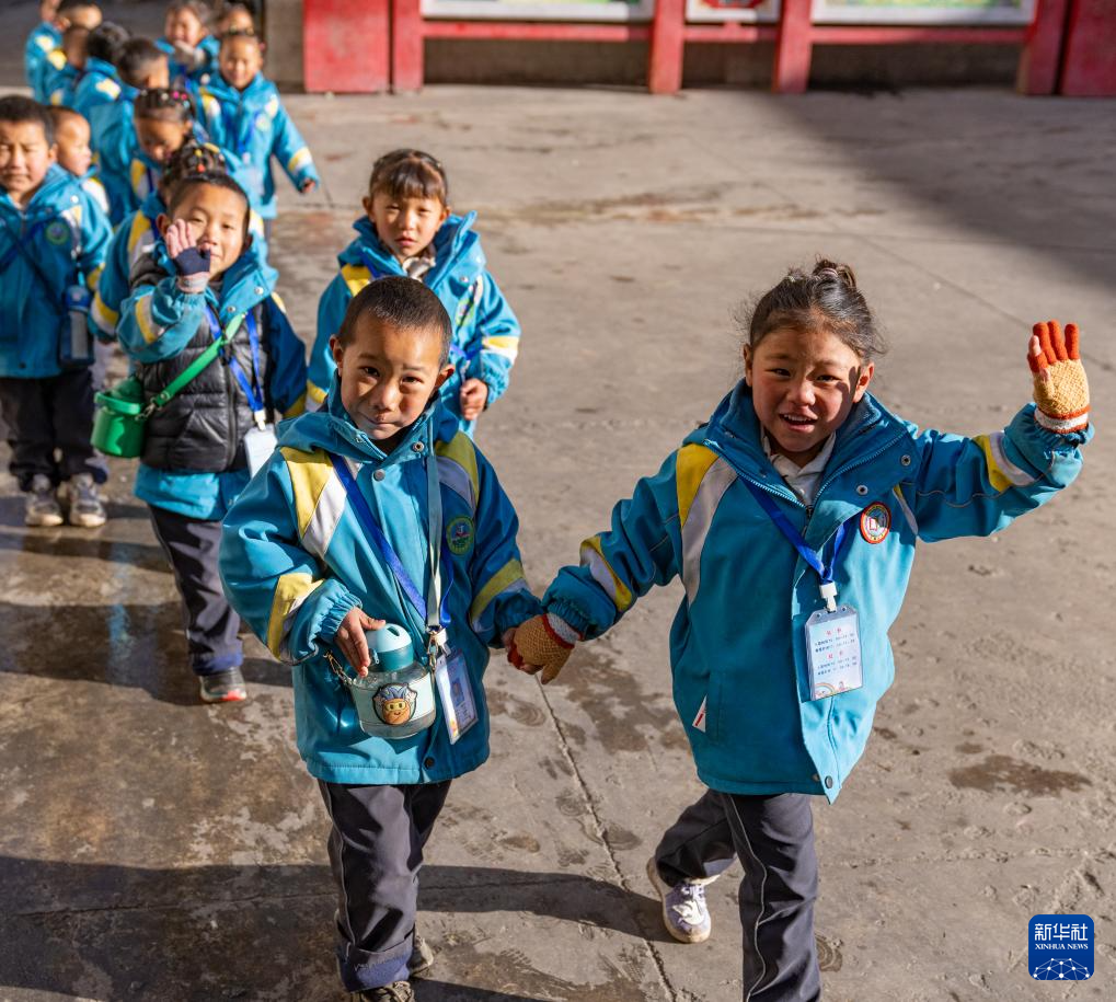 12月13日,陳塘鎮幼兒園的孩子們前往教室。