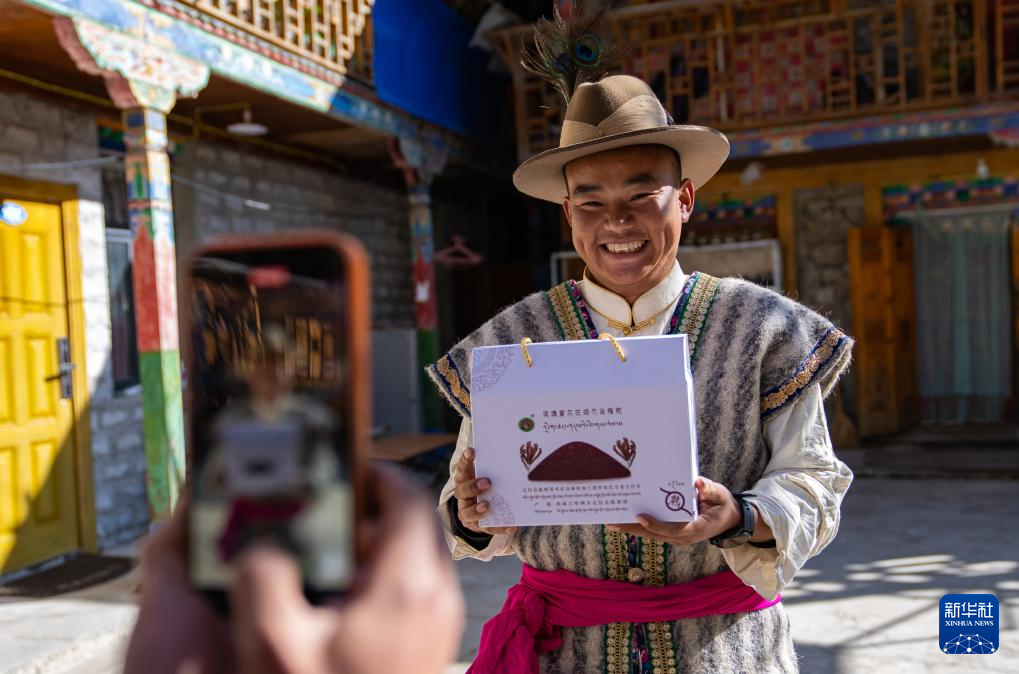 12月13日,自媒體博主夏爾巴人旦增在拍攝視頻推介當地特產雞爪谷糌粑。