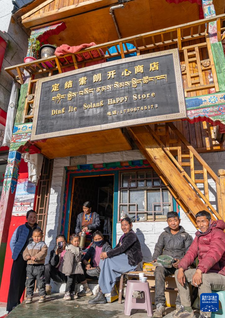 12月13日,陳塘鎮夏爾巴群眾坐在商店門口。