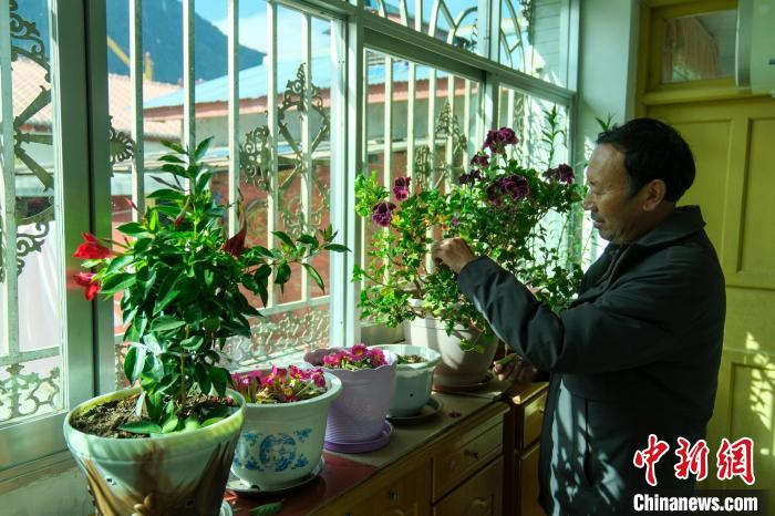 今年62歲的益西四郎是西藏波密縣居民,如今已經(jīng)退休,他見(jiàn)證了川藏公路波密段幾十年間的變化。圖為12月14日,益西四郎在家打理花草。記者 江飛波 攝
