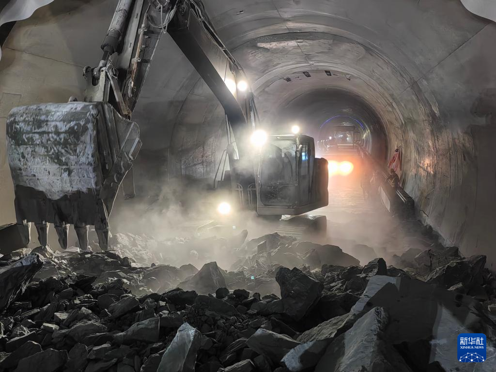12月16日,中鐵二十局施工人員在然烏隧道內施工。新華社發(劉強攝)