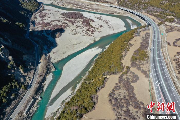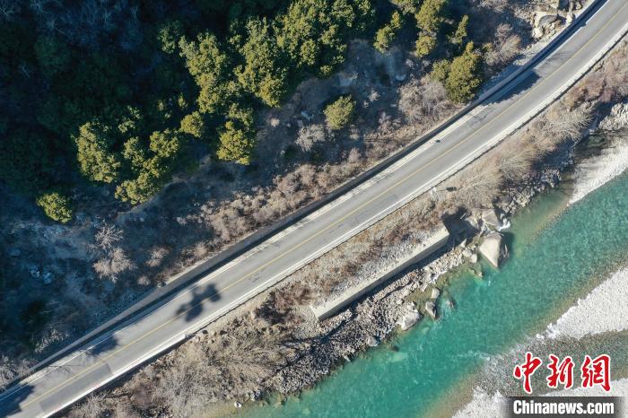 12月16日,西藏自治區林芝公路事業發展和應急保障中心(工布江達養護段)道路養護工人及時清除川藏公路上的落石,保障道路暢通。該養護段擔負著川藏公路沿線工布江達縣路段的養護管理、應急搶險等工作,包括路面修補、清理邊溝、維護交通安全設施等日常養護工作。圖為部分養護路段。(無人機照片)中新社記者 貢嘎來松 攝