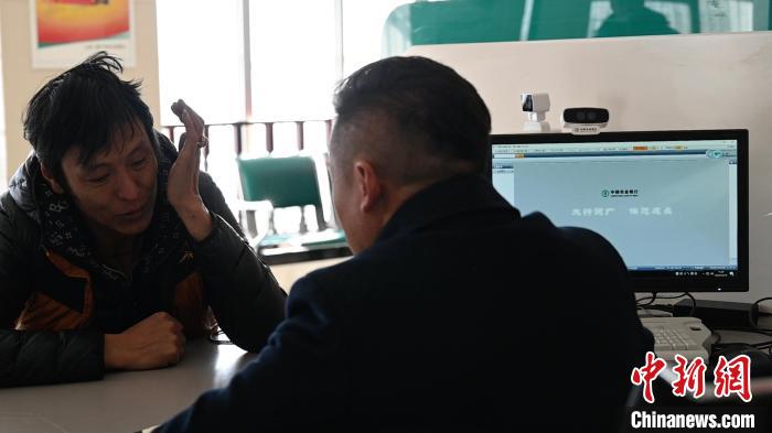圖為當地農牧民在銀行咨詢金融業務。 謝牧 攝