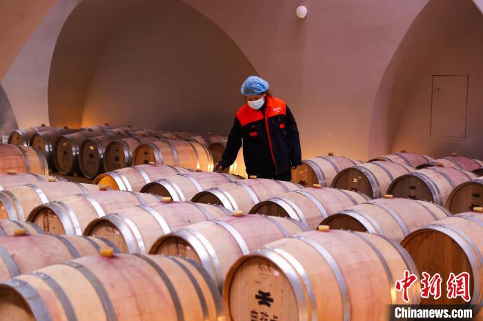 1近年來,芒康縣將葡萄酒產業作為重點特色產業,葡萄酒企業正如雨后春筍般涌現,葡萄種植業已成為當地民眾增收致富的重要途徑。圖為工作人員在橡木桶貯藏區檢查。中新社記者 薛蒂 攝