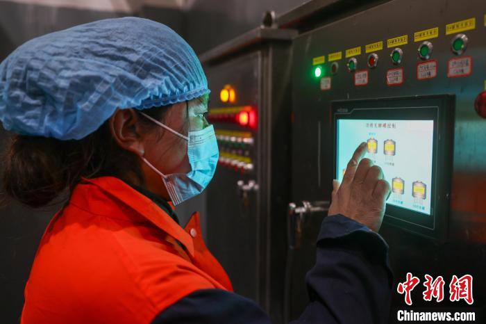 芒康縣在種植葡萄方面有著悠久的歷史,因干熱河谷氣候優勢明顯,紫外線強、光線充足,適宜大面積栽種無公害綠色釀酒葡萄。圖為工作人員檢查瓶儲區葡萄酒狀態。中新社記者 薛蒂 攝