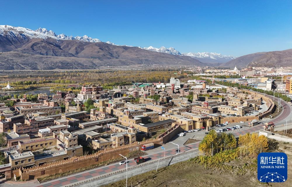 這是2024年10月29日在四川省甘孜藏族自治州拍攝的國道317公路,路邊是甘孜縣格薩爾王城景區(無人機照片)。新華社記者 王曦 攝