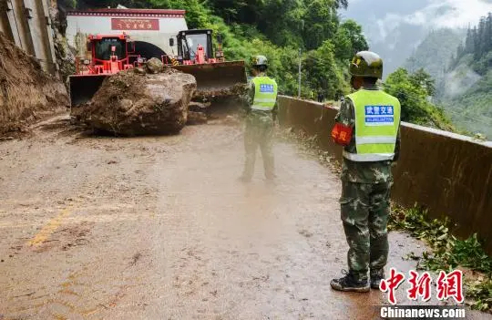圖為武警官兵處理路基垮塌險(xiǎn)情現(xiàn)場(chǎng)。受訪單位提供