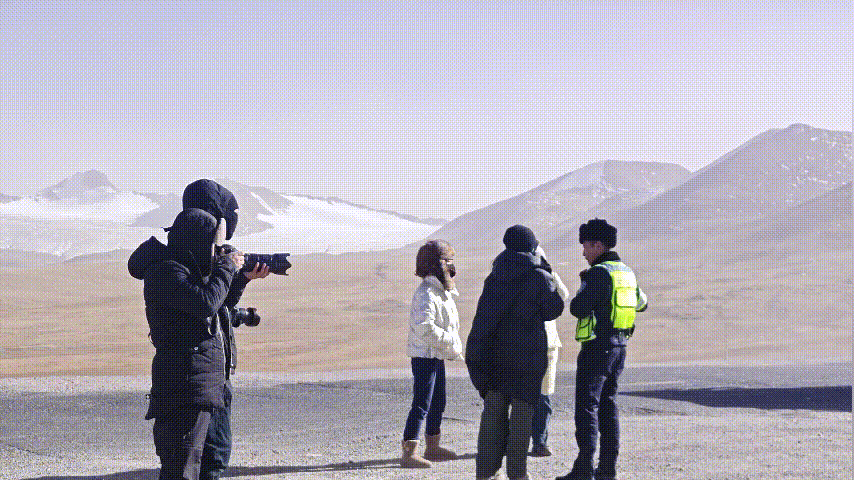 海拔5231米的唐古拉山口,大風(fēng)吹得人都站不穩(wěn),風(fēng)沙撲打在臉上,冰冷生疼。而這樣的大風(fēng)天氣安多交警們?cè)缫阉究找?jiàn)慣,甚至他們稱(chēng)這樣的天氣算是執(zhí)勤中的好天氣。