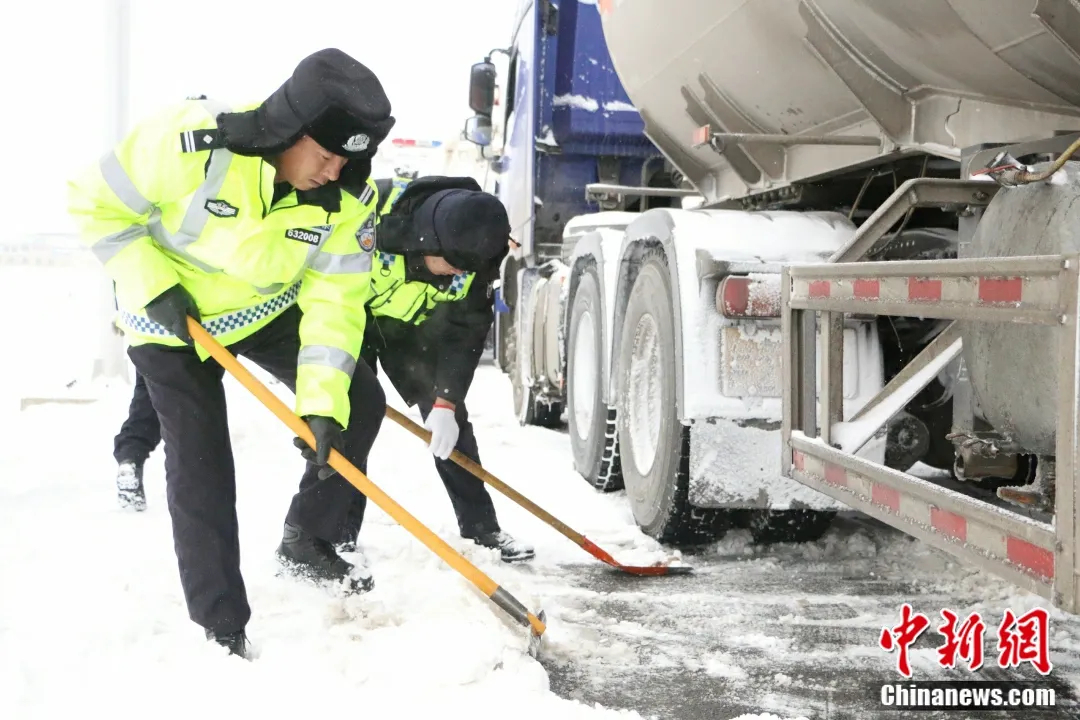 資料圖為交警除雪保通畫(huà)面。受訪單位提供