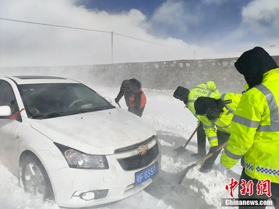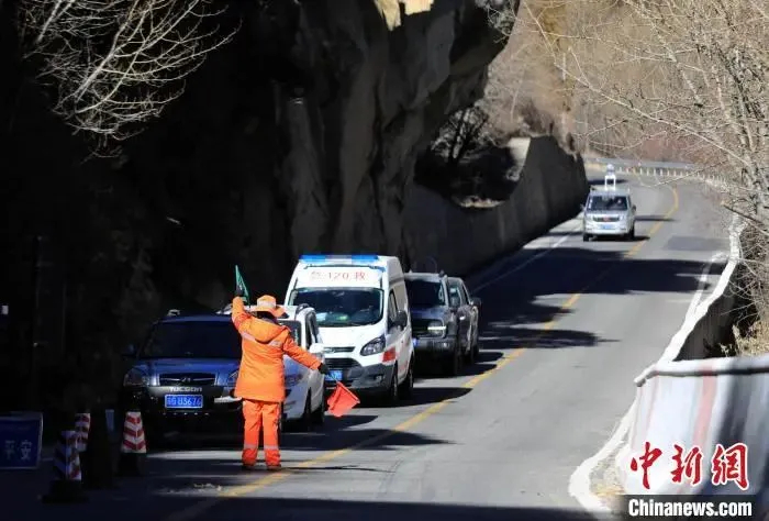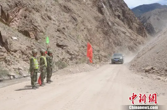 圖為護(hù)路期間,道班工人引導(dǎo)往來(lái)車(chē)輛。中新社記者 王磊 攝
