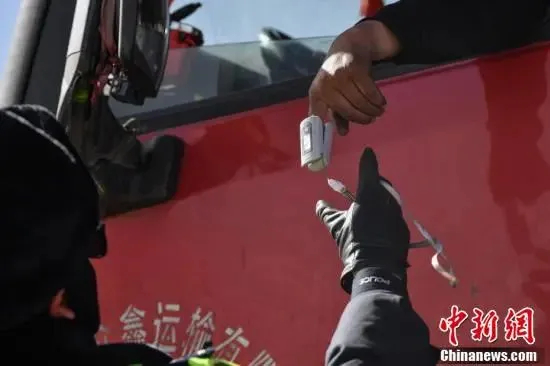 圖為交警為貨車(chē)司機(jī)測(cè)量血氧。中新社記者 貢嘎來(lái)松