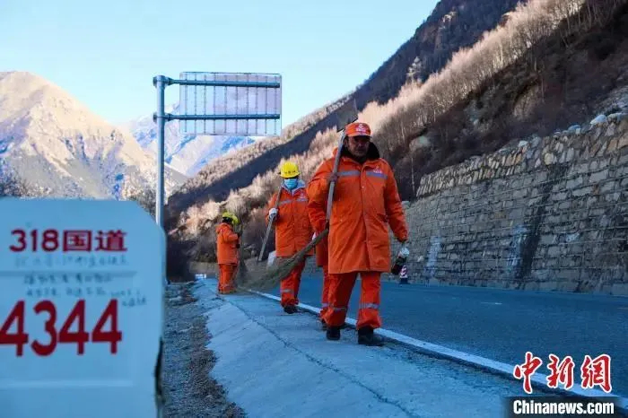 圖為道班工人清理公路上的落石。中新社記者 貢嘎來(lái)松 攝