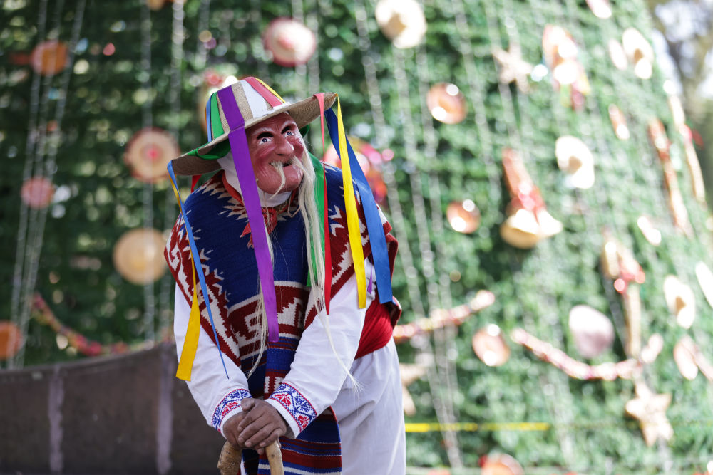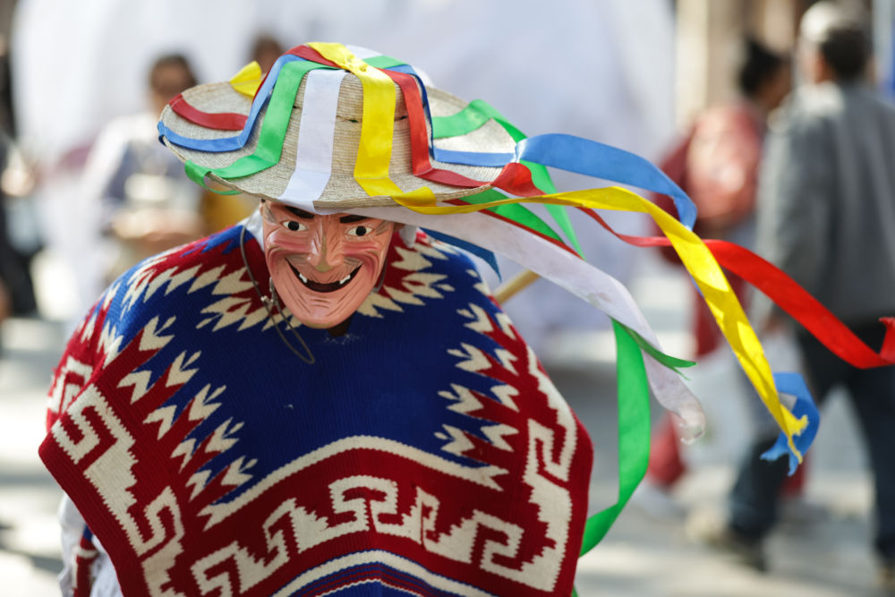 墨西哥面具舞中的“老者之舞”是墨西哥米卻肯州最具代表性的傳統舞蹈之一,起源于普列佩查原住民文化。這種舞蹈以其充滿活力的表現形式和文化象征而聞名,據說發展自墨西哥獨立之前人們向心目中的神明祈求豐收的儀式。在木屐的聲響與裝飾草帽的彩色絲帶互相映襯之下,每當老者之舞上演,米卻肯州帕茨夸羅的廣場便化身為一座承載古老記憶的舞臺。