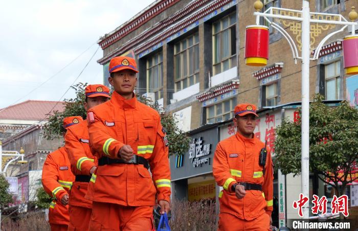 圖為西藏森林消防總隊林芝支隊巴宜區中隊元旦假期防火專項行動中開展流動宣傳。西繞拉翁 攝