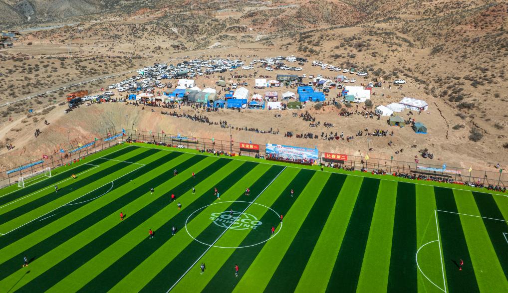 在馬利鎮“云中球場”,球員們正在比賽中(1月2日攝,無人機照片)。新華社記者 丁增尼達 攝