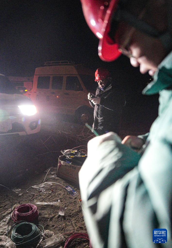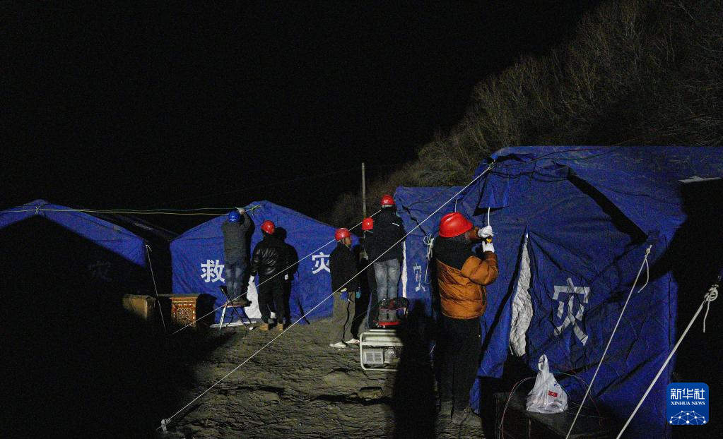1月7日,在定日縣長所鄉集中安置點,工作人員在保障電力供應。新華社記者 晉美多吉 攝