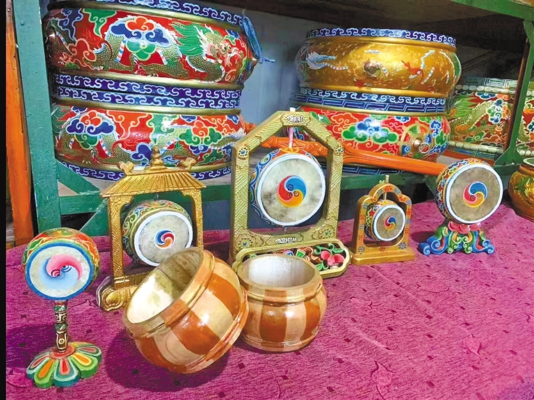 扎雪鼓制作傳承至今已有500年歷史,在藏族文化中具有娛樂、禮儀等多元功能,涵蓋鼓音樂、鼓舞、彩繪與雕塑等藝術形式。然而,隨著現代化樂器沖擊等因素的影響,這一技藝曾一度陷入困境。但在貢秋頓珠家族的堅守與努力下,扎雪鼓制作技藝成功申報為西藏自治區級非物質文化遺產項目,在現代社會中煥發出新的生機。2016年7月,貢秋頓珠牽頭成立了墨竹工卡貢秋頓珠鼓藝文化傳承專業合作社,吸納了5戶建檔立卡貧困戶共7人參與,既為貧困家庭提供了就業機會,又壯大了傳承隊伍。